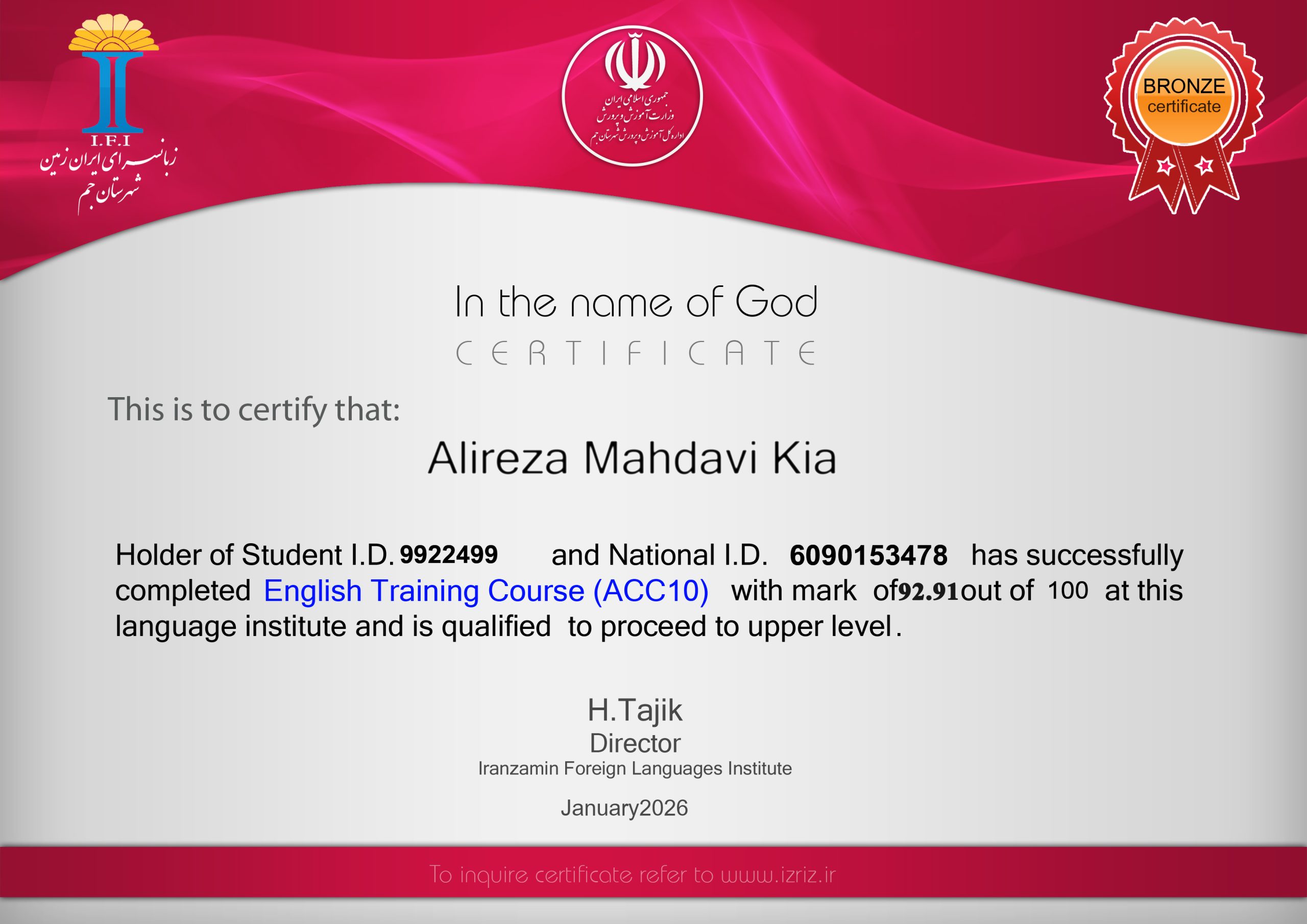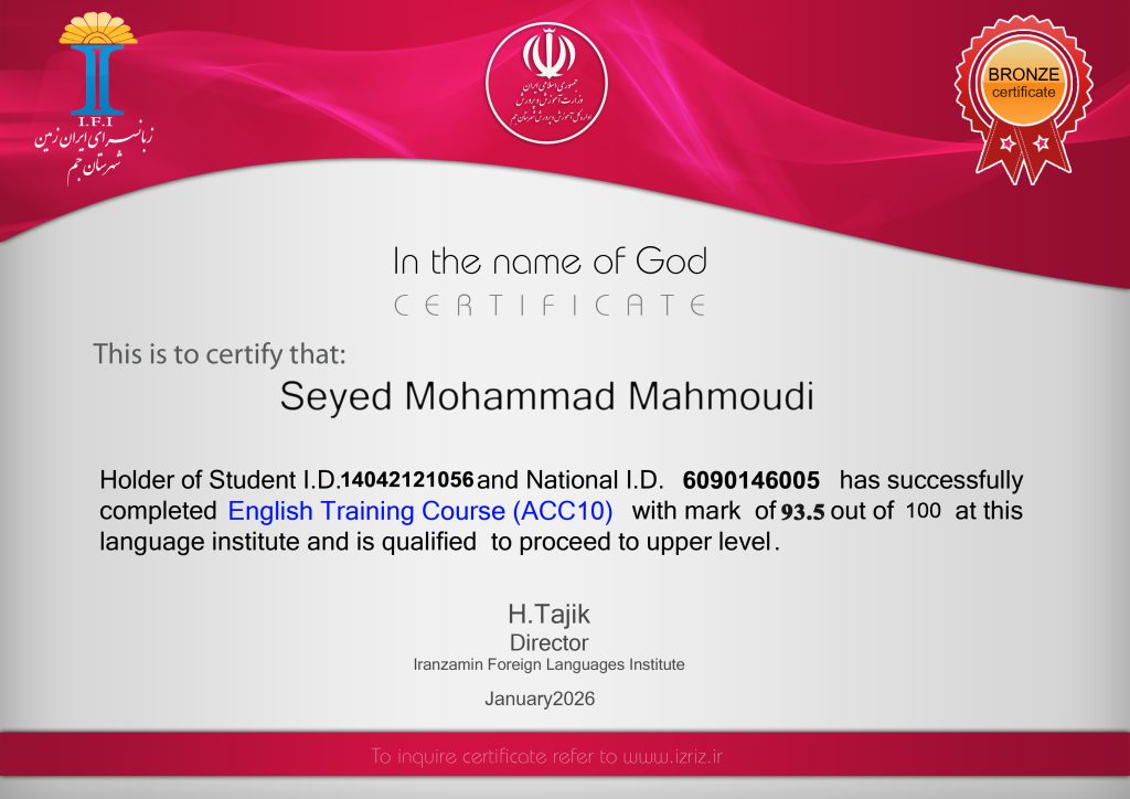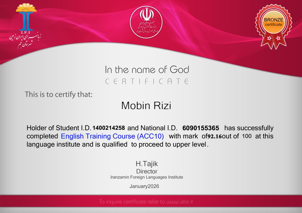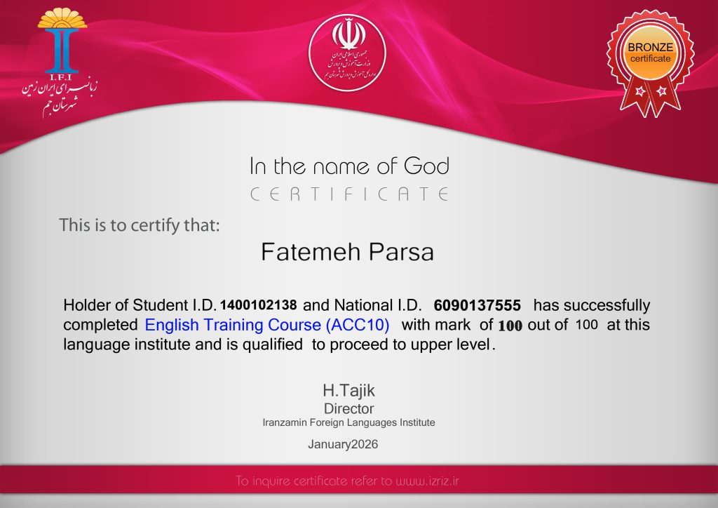 مدرک برنز مدرکی است که پس از پایان سطح ۲ کتاب تاپ ناچ پس از گذراندن ۱۰ ترم به زبان آموزان اهدا می گردد. تلاش های این عزیزان را ارج می نهیم.