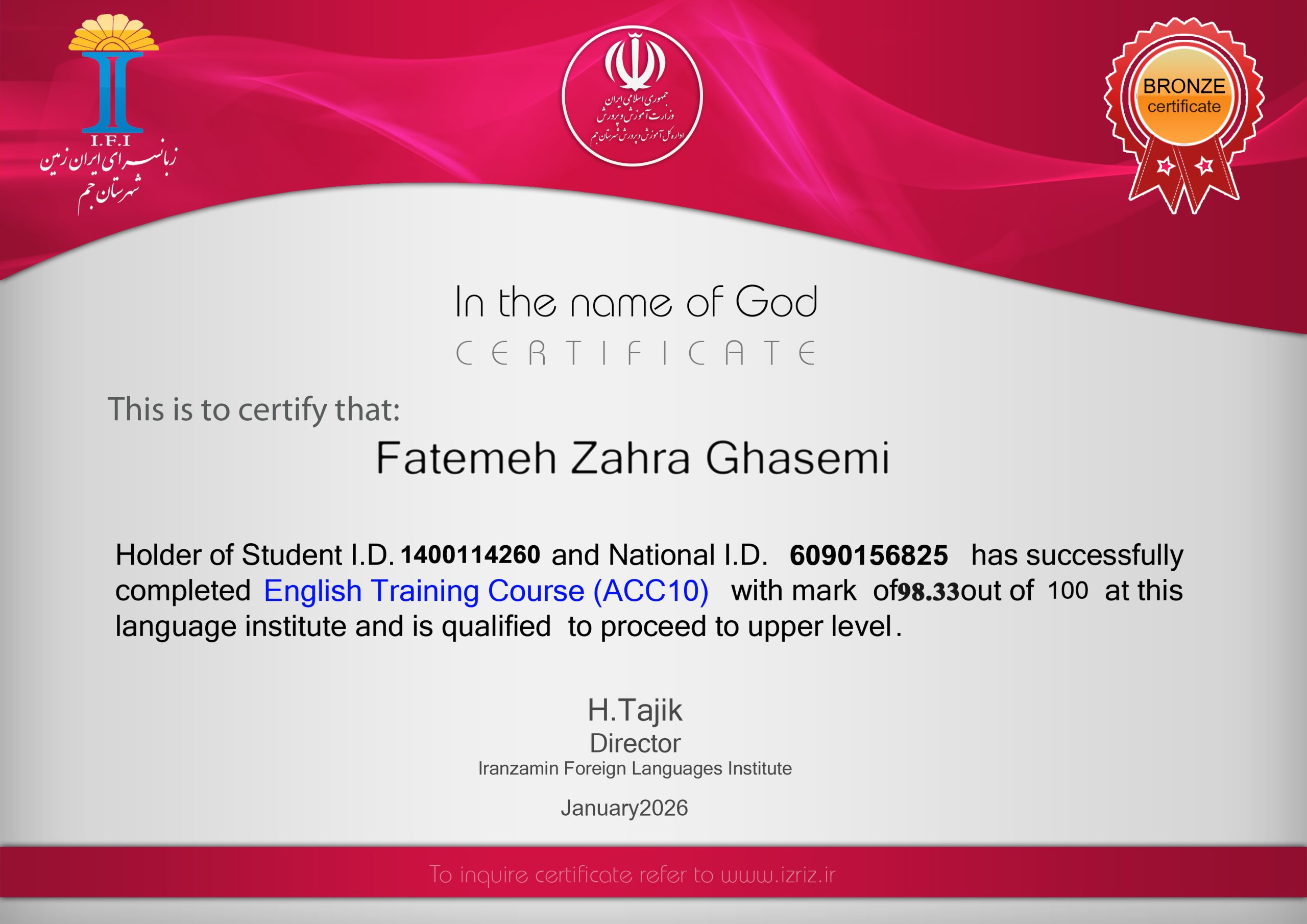 اسامی سری یازدهم زبان آموزان دریافت کننده مدرک برنز زبانسرای ایران زمین