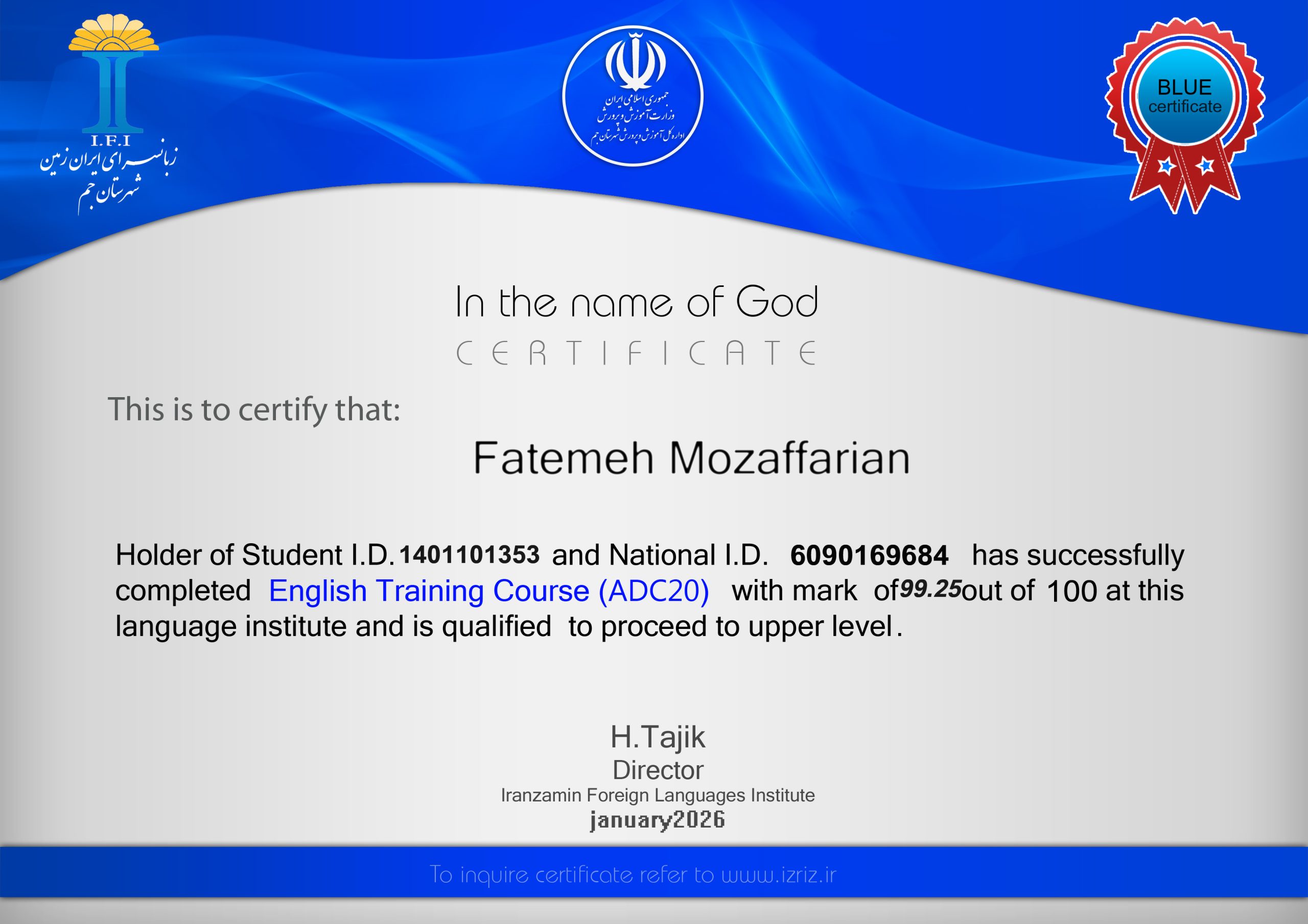 اسامی سری دهم زبان آموزان دریافت کننده مدرک آبی زبانسرای ایران زمین